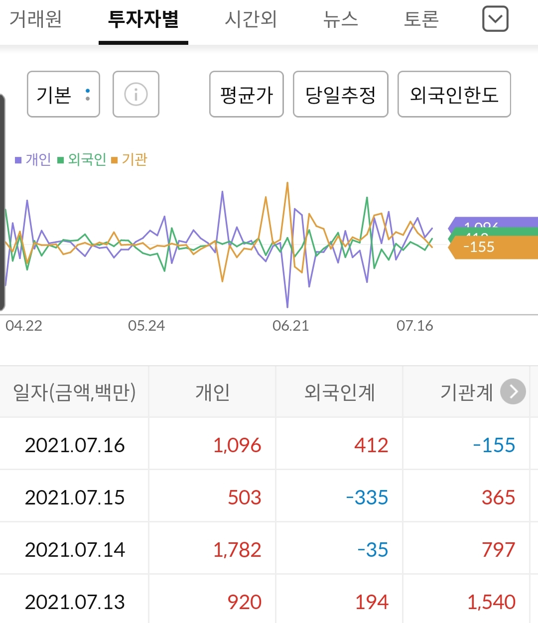 연일 외국인과 기관 개인 매수세가 보이며 강한흐름이 있어서