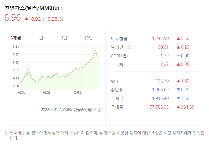 천연가스는 7달러 선 밑돌며 조정국면...국제 유가는 상승세 보여 (socialvalue.kr)
