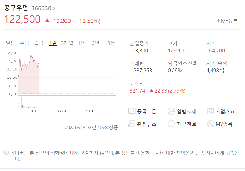 06/16일 현재 18% 상승하는 모습을 보이고 있다.