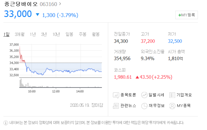 안녕하세요, 주덕이 입니다. 오늘은 콜마비앤에이치에 이어 종근당바이오 주가, 주식분석 그리고 투...