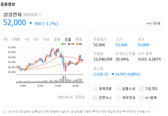 | 삼성전자 코로나를 이겨내고 6만원 갈 수 있을 까요? (0) | 2020.06.23 |