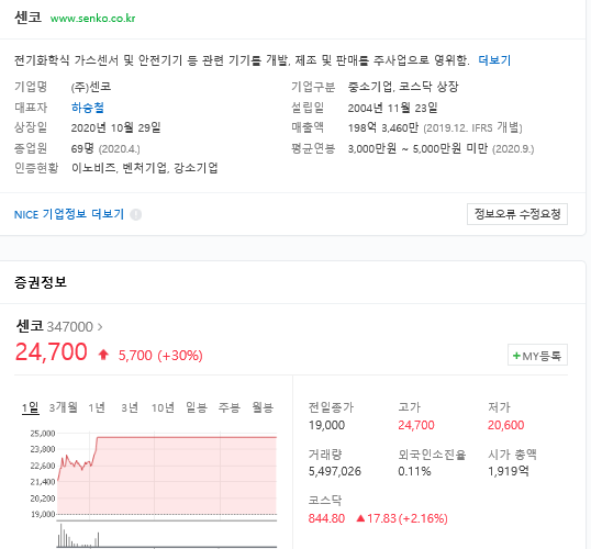 센코, 2020년 10월 29일 코스닥 상장센코는 2004년 11월 설립된 전기·화학식 가스센서 개발사입니다. 센코...